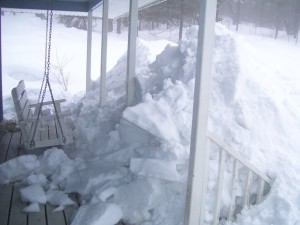 We had to replace the roof this summer, and we went with a steel roof. We knew this would mean snow wouldn’t stay put on the roof, but, um, we weren’t really prepared for what that would mean in actual practical everyday results.