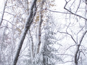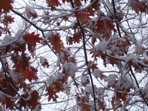 So I was going to say that the only deciduous leaves left are the oaks and some stubborn maples. That’s true. But today there was something else on the trees: snow. AAAACCCKKK!!!