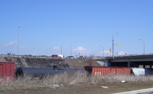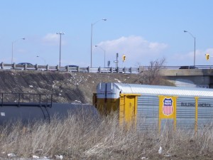 A train! This is always cause for stopping and rolling down the window, if at all possible, in my family. Everywhere. Even in Pickering.