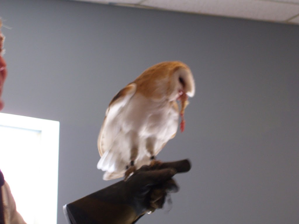Barn owls are cool looking. This guy below is eating a chicken leg. Yum!