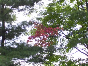 There’s no more denying it. It has begun. At first there was just a subtle hue of yellow or orange to the maple leaves, and only this one bunch of leaves was reddish orange. I figured it was an just a mutant branch.