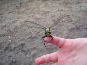 Then it was the six-hour drive home. We pushed through pretty quickly, because it was Sunday and the kids have this last week in school. Nor was I looking forward to driving during peak deer/moose roaming hours. We did stop for a break at my fave picnic spot on Golden Lake where my daughter found this dragonfly in the water.